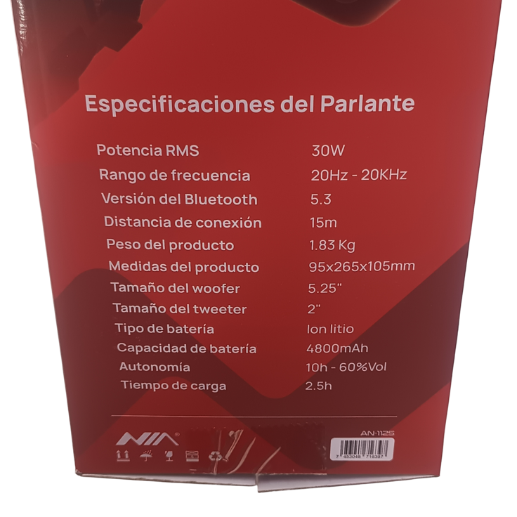 Parlante Bluetooth 5.2″ 30W Rms An-1125